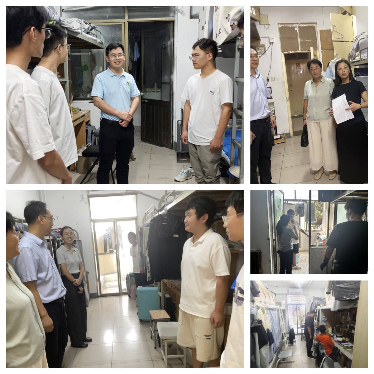 走访过程中,我院领导与辅导员们分组前往学生宿舍,与返校学生亲切交谈。我院领导与老师们亲切询问了同学们的暑期实践经历、学习收获及返校后的生活安排,叮嘱大家及时调整作息,以饱满的热情投入新学期课程。在关心学生成长的同时,我院领导特别强调宿舍安全管理,逐层检查消防设施、用电规范,并叮嘱学生严禁使用违规电器,注意防火防盗。